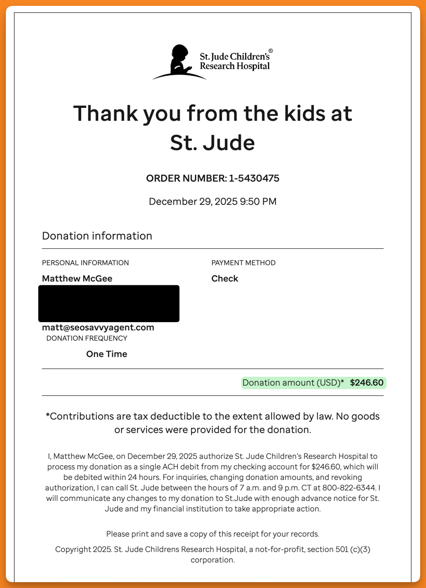 So to all who spent money with me in 2025, THANK YOU. A portion of what you spent is going to help others, and I hope that makes you feel good inside, too.