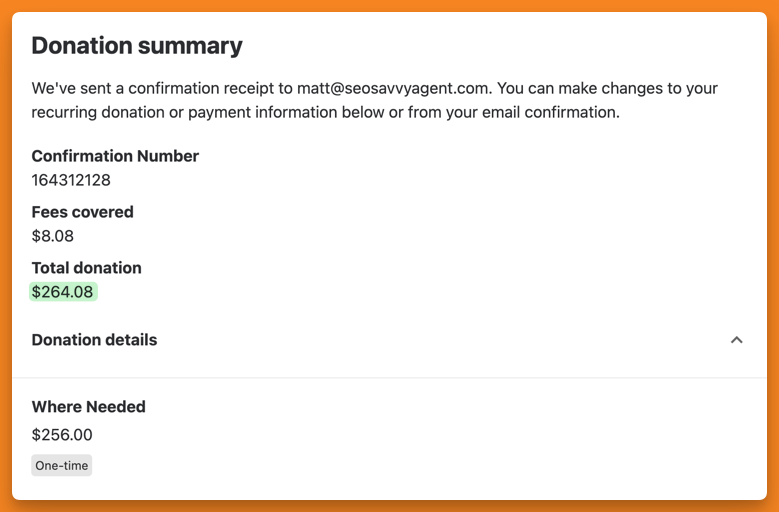 Last night, I made donations totaling $3,807.60 to three great organizations: