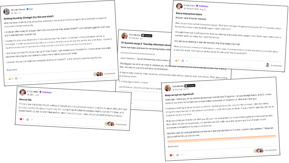The opportunity to ask as many questions as you need to grow your business, and get help from like-minded agents who are on the same journey as you. (Use your knowledge and experiences to help them, too.)